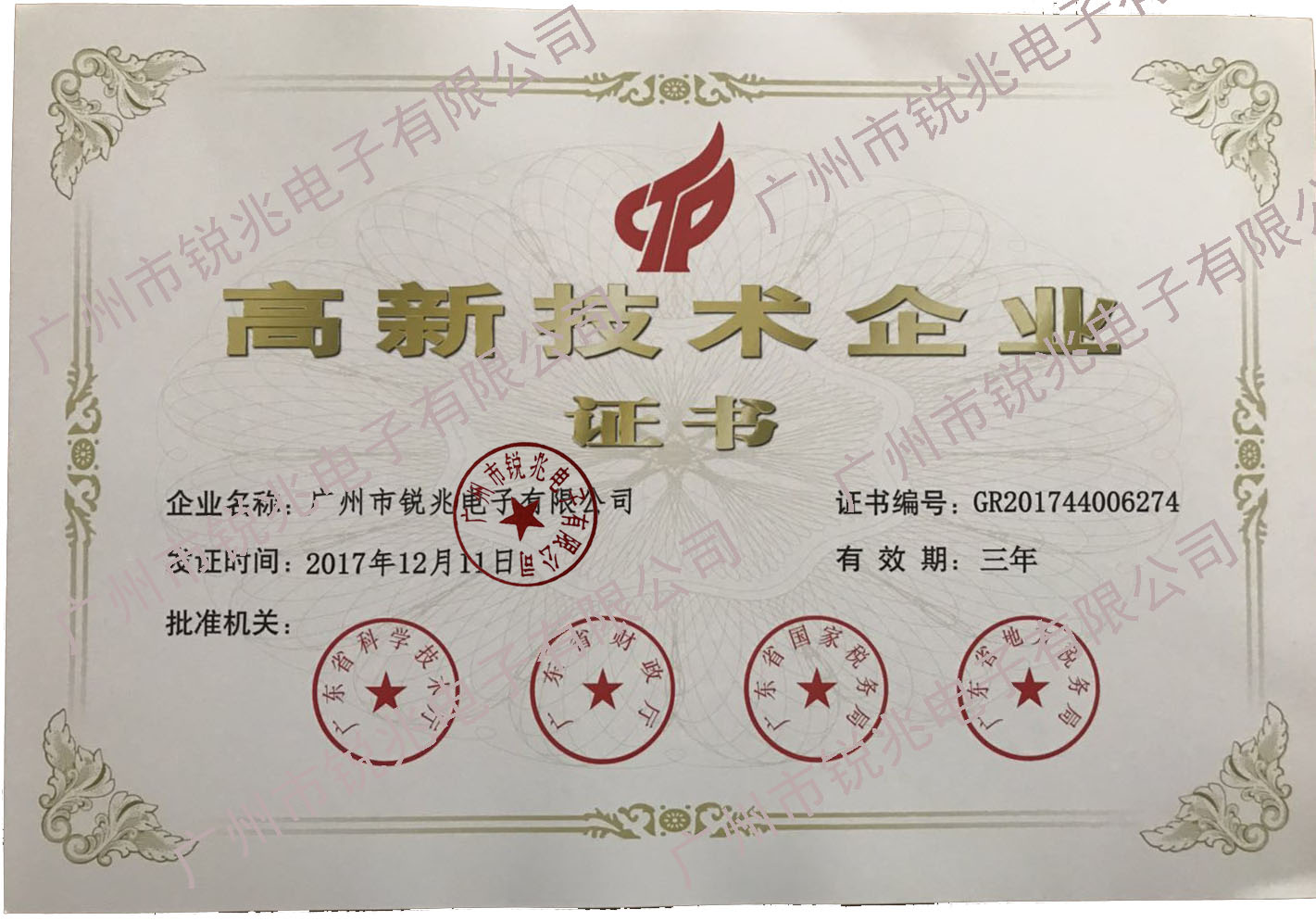 廣州市銳兆電子有限公司榮獲廣東省高新技術(shù)企業(yè)
